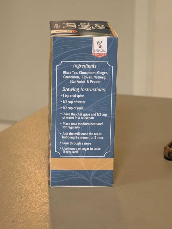 1 tsp chai spice 1/2 cup Steep in freshly boiled water (and milk if preferred) for 3–5 minutes to unlock its full flavor. Sweeten with honey or sugar to taste. Serve hot for a classic chai experience or iced for a refreshing twist.
